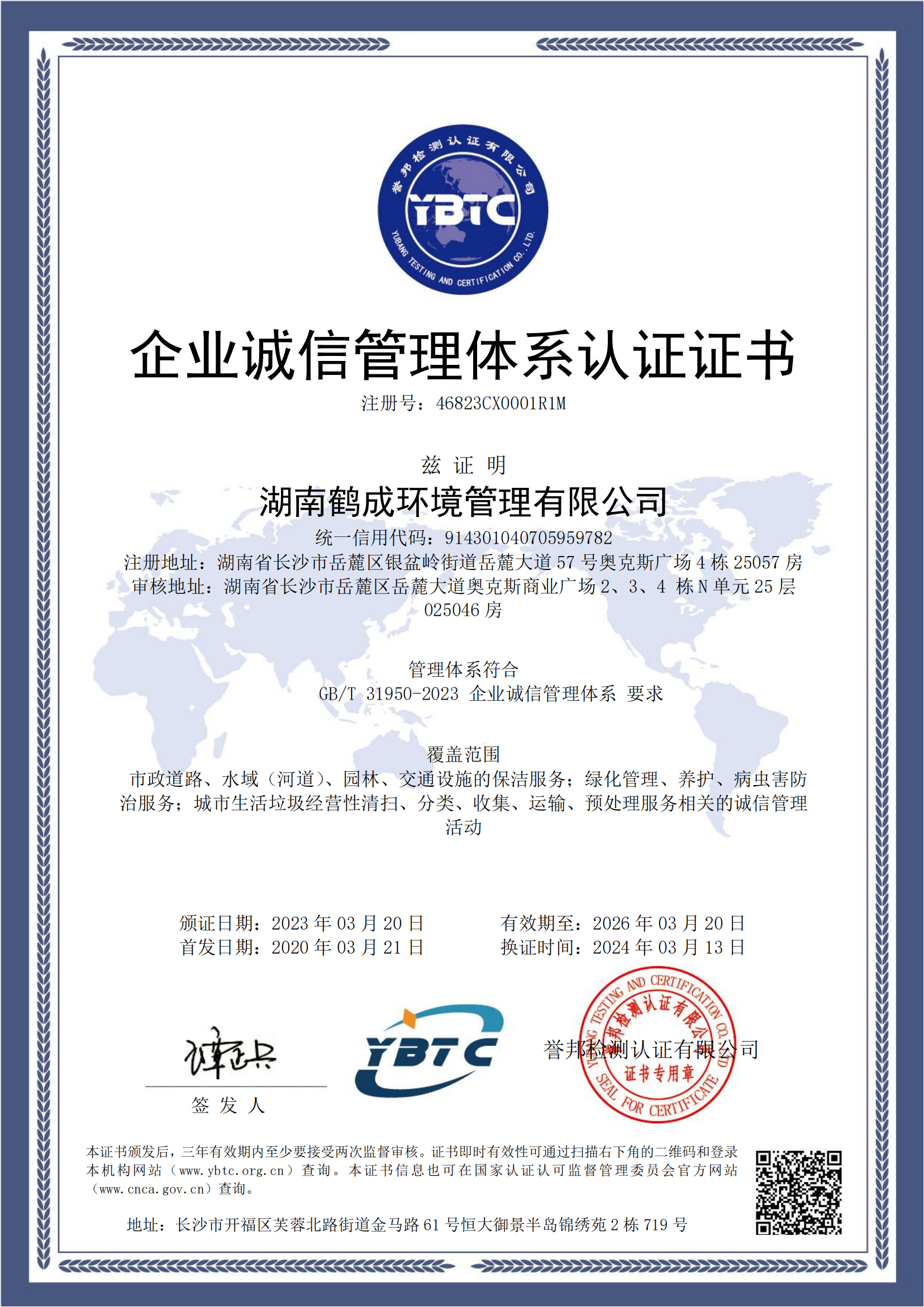 湖南鹤成环境理有限公司在市政环卫经营中不断ȝ、不断完善,提炼出富有企业特色的理模式…?/span>